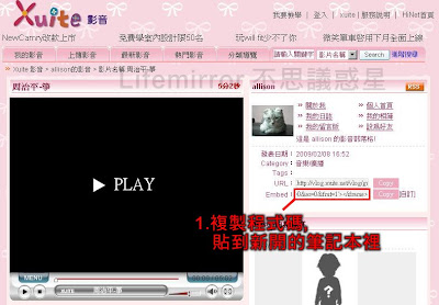 1.先將Xuite音樂盒的迷你播放器程式碼複製好, 貼在記事本備用,